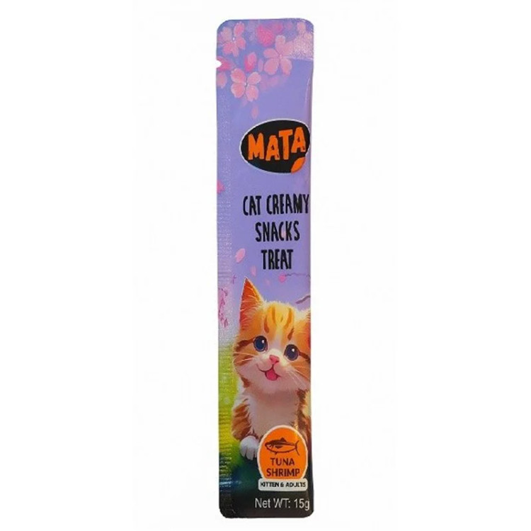بستنی گربه یک نوع تشویقی و میان وعده محسوب می شود که حالت نرم و خمیری شکلی دارد و به واسطه این حالت نرم، گربه ها استقبال زیادی از این بستنی می کنند. بستنی گربه MATA با ترکیبات خود برخی از ویتامین هایی که گربه به آن نیاز دارد را تامین می کند و همچنین از بوی دهان گربه کم می کند. این بستنی به خوبی مورد استقبال گربه ها قرار می گیرد و لیسیدن آن توسط آن ها به راحتی انجام می شود. بستنی گربه ماتا برای تمامی گربه ها از نژادهای مختلف از سن دو ماهگی به بعد قابل استفاده است. این محصول هضم آسانی دارد و به همین دلیل سازگاری بسیار خوبی با دستگاه گوارش خواهد داشت.بستنی گربه ماتا در طعم های زیر تولید شده است.